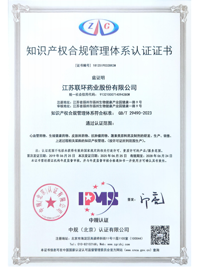 CopyRight ©2026  版权所有  江苏联环药业股份有限公司   电话:0514-82778972 地址:扬州生物健康产业园健康一路9号